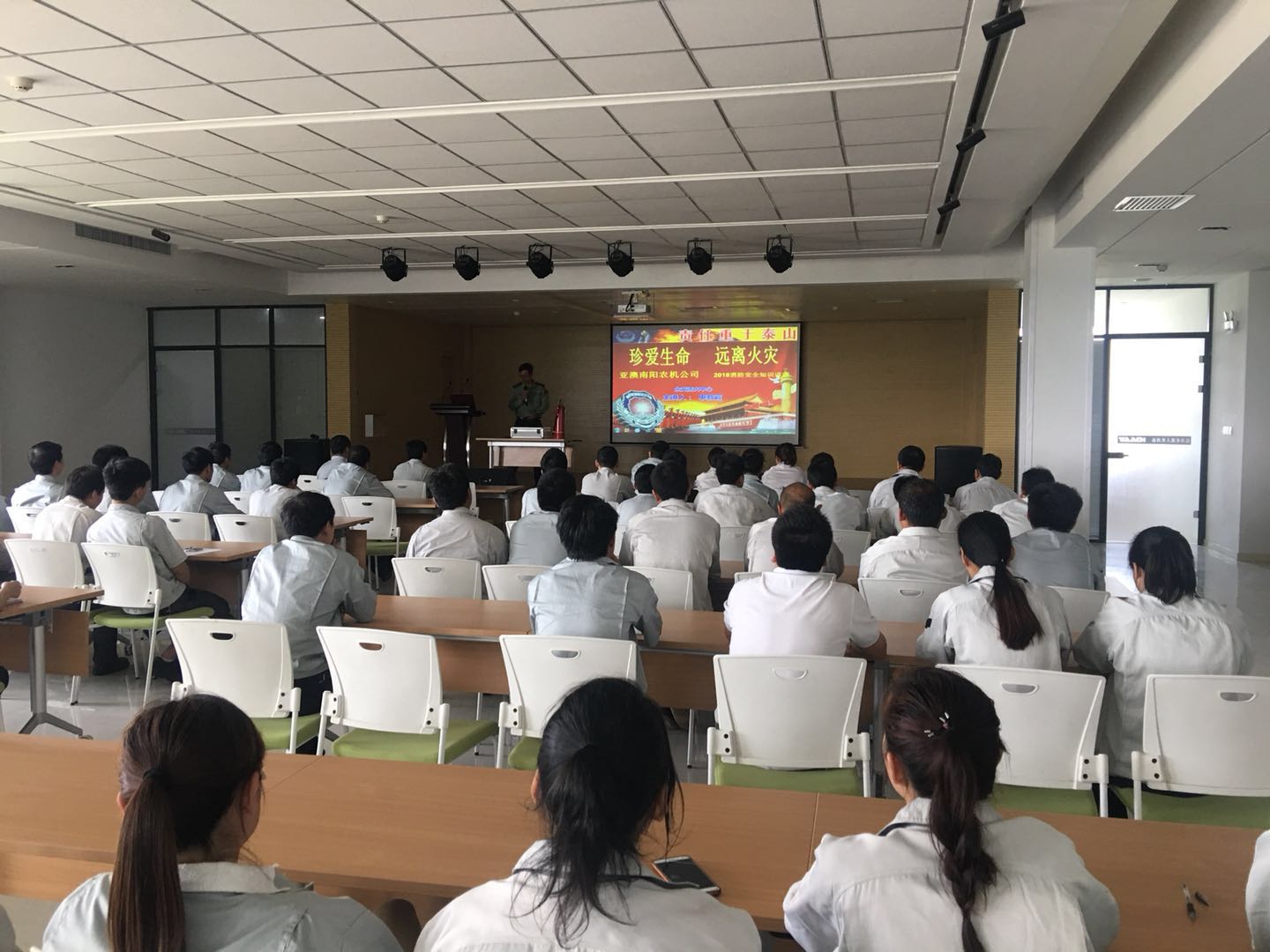 4月29日是,在節(jié)前最后一天,亞澳農機全體員工在二樓多功能廳進行了“珍愛生命,遠離火災”為主題的消防安全培訓,